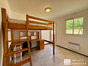 Pièce à vivre avec lit en mezzanine et bureau.