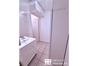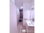 Salle d'eau avec toilettes et nombreux rangements.