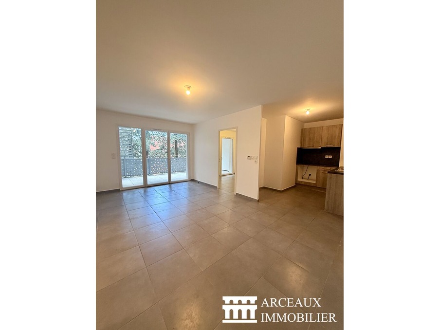 Il se compose d'un séjour donnant sur une spacieuse terrasse exposée Sud Est, d'une cuisine ouverte, de 2 chambres avec placard, d'une salle d'eau et d'un WC indépendant.